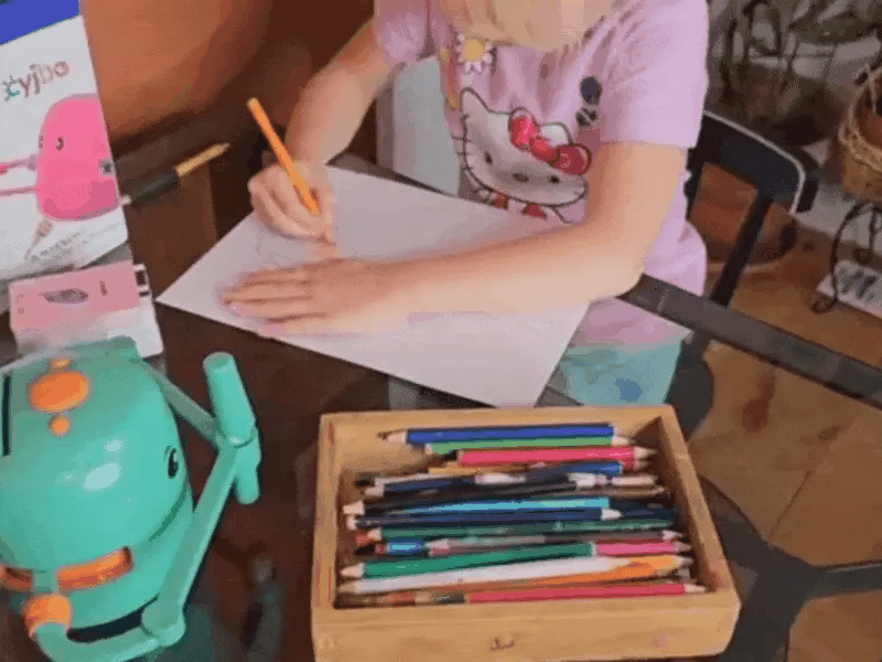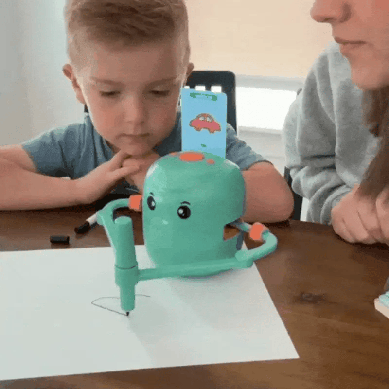 DrawBot guides kids step-by-step through 100+ adorable designs! Just insert a drawing card, press the button, and watch it sketch while following along.